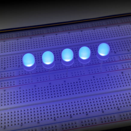 Bright Sky Blue 10mm frosted lens LED operates on 3.6V @ 40mA. Sold in a package of 4.