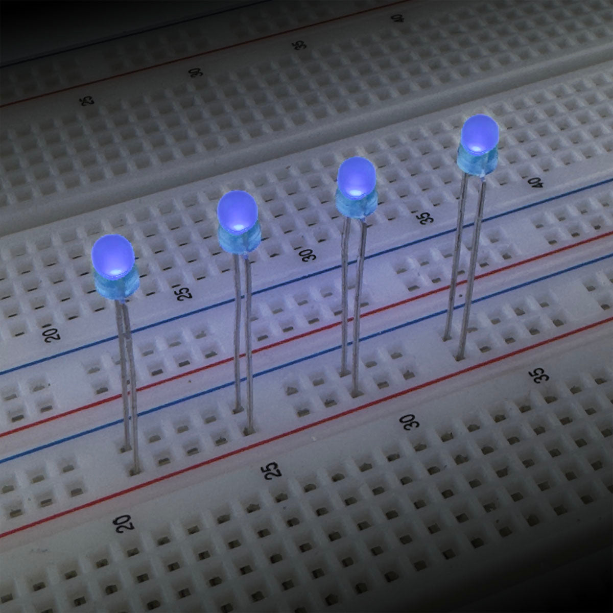 Beautiful 3mm T1 diffused lens LED lights up a bright sky-blue color when 4.2 VDC @30mA is applied. Sold in a package of 4.