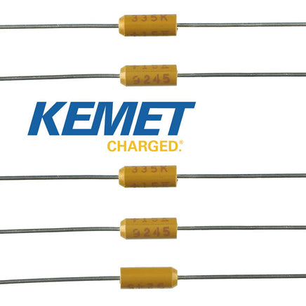 Kemet 3.3uF 15V 10% tolerance solid tantalum axial capacitor part# T322B335K015AS is only 0.3" long x 0.1" dia. Has full length axial leads. New! Sold in a package of 10.