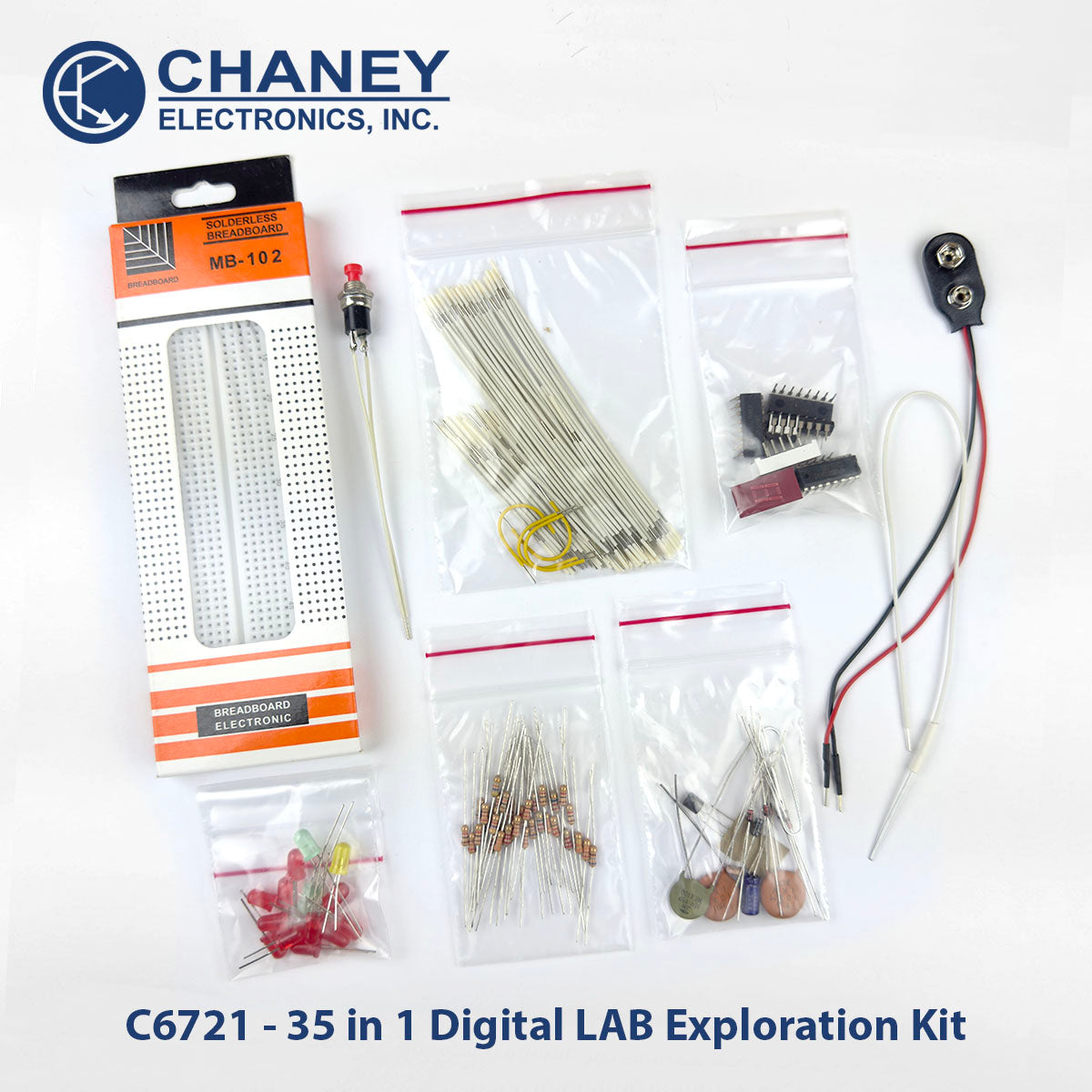 Optional Logic Probe: Although the 35 in 1 Deluxe Digital Lab includes a simple logic probe section built on the breadboard, you may wish to purchase the very inexpensive Chaney C6722 CMOS/TTL Logic Probe Kit. Although this is totally optional you will find that this logic probe is very useful to test and troubleshoot all kinds of digital circuits.