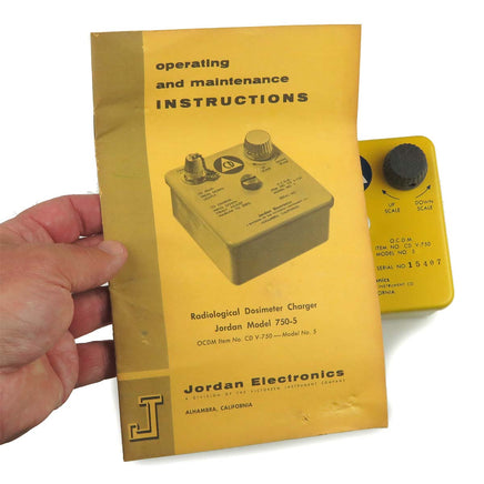 Jordan Dosimeter Charger Model CD V-750 was designed to charge all common Quartz Fiber dosimeter pens such as the CD V-742 (not included). It operates on 1 "D" battery (not included) and by adjusting the knob you could adjust the hairline in the pen to zero. We do not test them, they are used , and are selling them "As Is" used. These do come with an original manual.