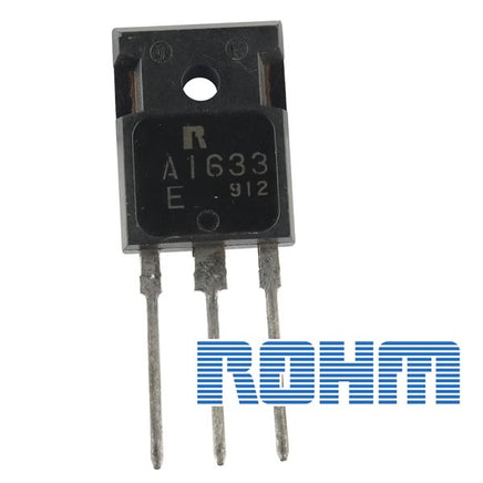 Rohm 2SA1633 is a 100Watt PNP silicon power transistor in a TO-247 package. Ratings: VCBO -150V, VCEO -150V, IC -10Amp and PD 100Watts. Original Rohm Part.