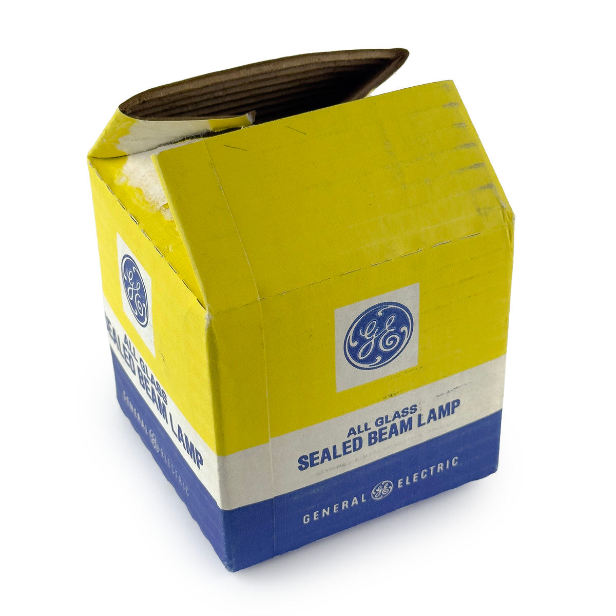 General Electric floodlight incandescent sealed beam 4422 tractor lamp, new in box. Operates on 12.8V and rated 35 watt.