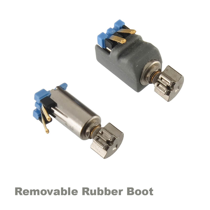 This is the smallest pager motor we have ever seen! It is only 0.33" L x 0.16" dia. (excluding removable rubber boot). These operate from 1VDC up to 4.5VDC and produce a nice vibration. Great for making tiny robots. Note: Photo shows product with and without boot.