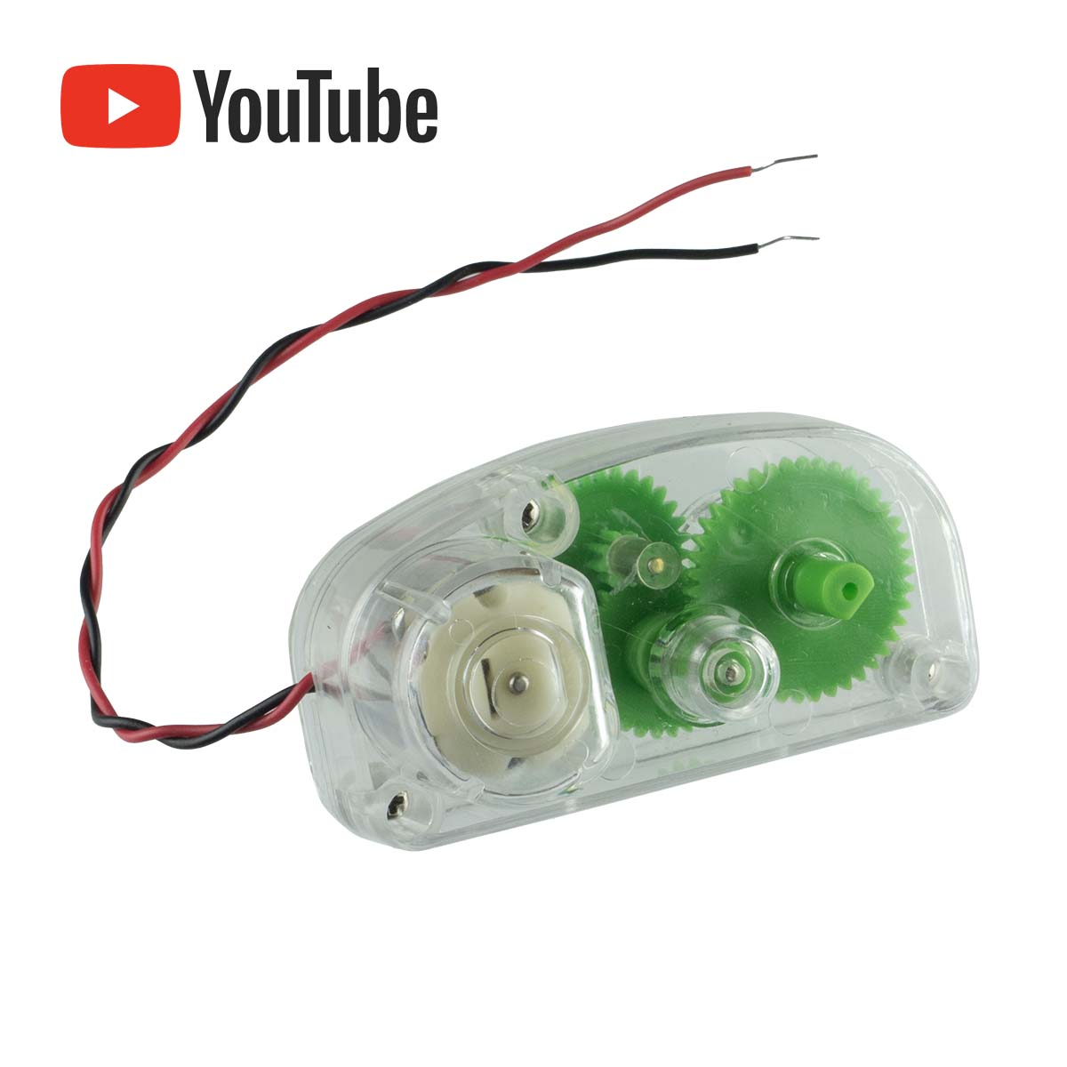 Super DC gearbox motor is great for powering robots, displays, small model cars, etc. Operates from 1.5VDC up to 9VDC. Completely see thru clear gearbox has output shaft on both sides. At 1.5VDC the shaft turns at about 24RPM and unloaded current requirement is 160mA. To change direction of rotation just reverse polarity. Output shafts are 0.24" dia. "D" shafts with 0.068" center hole. Overall size about 2.8" long x 1.68" wide (at widest point) x 1.44" tall. Brand new and fascinating to watch when operating!