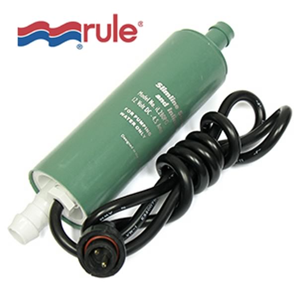 The Rule IL280PG 12VDC at 4.5Amp inline submersible pump can deliver 280 gallons per hour of fresh or sea water at 14 PSI. It is great for bilge pumping, showers, water delivery systems, pools, gardens, water transfer, etc. Head rate is 32ft, outlet hose bib for 0.5" internal diameter hoses, and size is 6.5" long x 1.5" diameter. Has a 3ft waterproof cable terminating in a special waterproof male 2 pin connector. Brand new - worth over $75. Regular price $25.