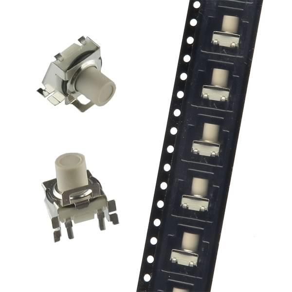 Small SMD mounting high quality has round button gull wing and normally open SPST contacts rated 32VAC / 32VDC IVA. Sold in a package of 10.