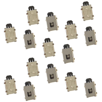 This is one of the smallest SMD right angle PC mount pushbutton switches. This tiny switch actually gives a "click" to indicate when button is pushed. It has momentary SPST contacts that are normally open and close as long as button is held in. Size only 0.23" long x 0.17" wide x0.07" thick (excluding tiny black pushbutton). New sold in a package of 10.