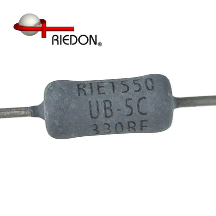 Riedon / Bourns 330 Ohm 5Watt 1% tolerance power wirewound resistor is 0.25" dia. x 0.500" long excluding axial leads.