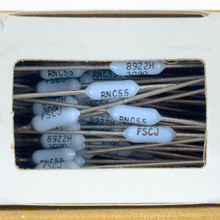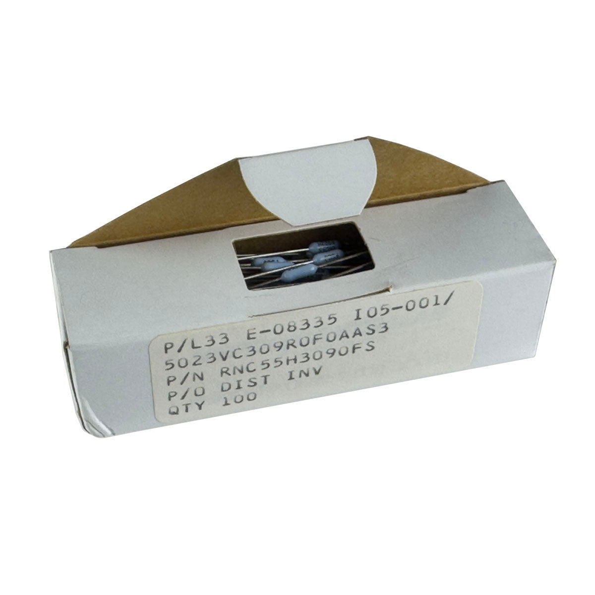 Factory box of 100 RNC55H3090FS metal film 309 Ohm, 1/8 Watt, 1% axial lead precision resistors. Brand new – Retails for $40.