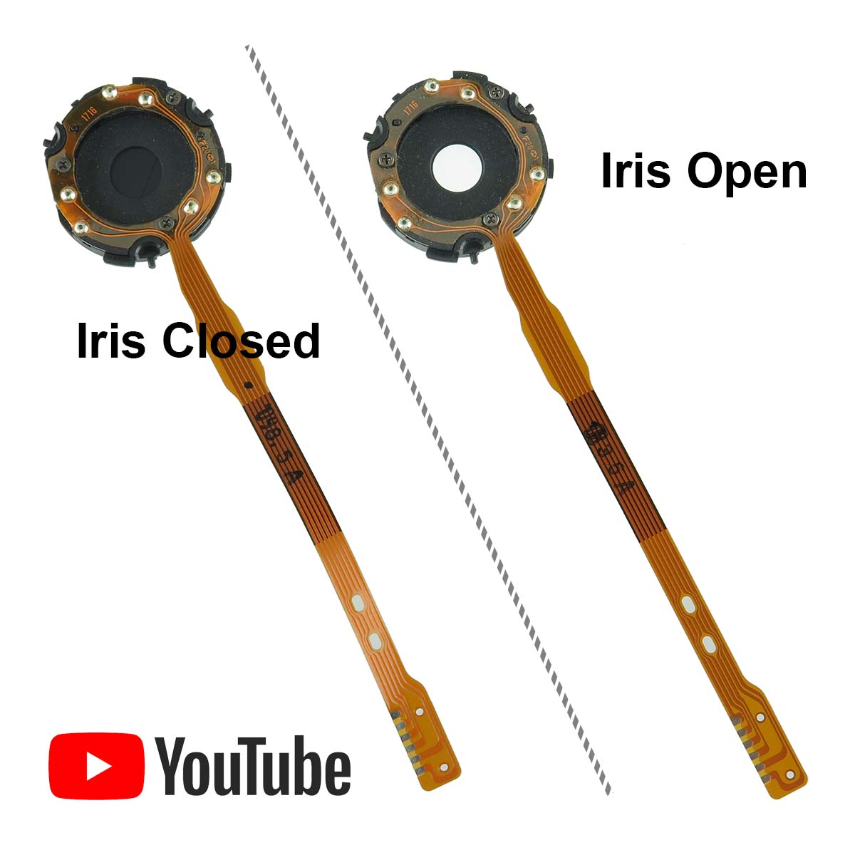 Very unique electronic iris assembly made for Kodak cameras. We have had these for years and finally decided to sell them. This is brand new old stock. It is about 1" outer diameter x 0.18" thick. Inside the assembly are 3 enclosed tiny electromagnets. There is a 3.2" long flat ribbon cable with 6 solder plated fingers. We applied power and the iris opened. When we reversed the polarity and applied the voltage again it closed. We think that for reliability you would need to connect each group of 2 fingers (corresponding to an electromagnet) in parallel, however we didn't try this. Very unique and fascinating assembly. Sorry we have no other data.