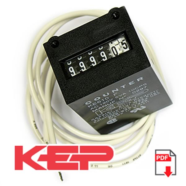 Kessler Ellis KE610F 6 digit impulse counter is unique in that each 120VAC impulse it receives increments the black digits by 5, then when 20 impulses are received the 4 white digits to the left of the black digits increment by 1. This is non-resettable and has 2 threaded 4-40 holes on the top and bottom for mounting. Size is 2.2" long x 1.35" x 1" high. Has 2 flexible insulated leads for connection. Brand new retails for about $30.| Additional Resources |