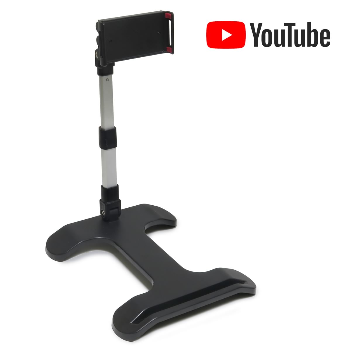 A handy adjustable mobile phone stand holds most mobile phones securely at an adjustable height. Stand adjusts height to about 16" high at top and has various adjustments to tilt swivel and set height. Base is about 11.5" x 10" and sits securely on the desk and allows you to conveniently do video calls, view movies, monitor web sites, etc. Folds down when not in use. Supplied in manufactures box. Brand new!