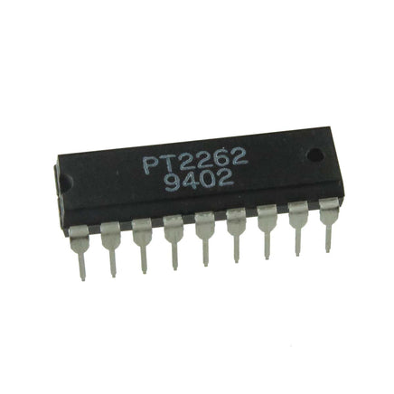 PT2262 is a remote control encoder IC that encodes data and address pins into a serial coded waveform suitable for RF or IR modulation. Supplied in a 16 Pin thru-hole Dip.