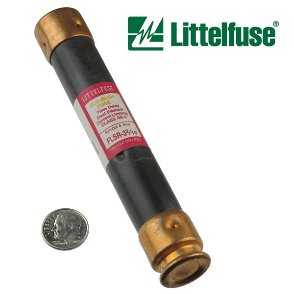 Littelfuse FLSR 3-2/10Amp 600VAC fuse is a Slo-Blo time delay dual element current limiting class RK-5 fuse. This fuse is about 4.9" long x 0.8" diameter. New Old Stock.
