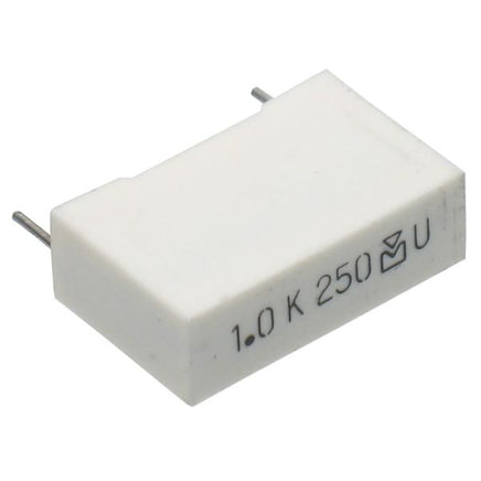 Compact 1UF 250V Film Capacitor is only 1" long X 0.33" wide X 0.65" tall. Has radial leads on 22mm (0.865") centers. Sold in a package of 4.
