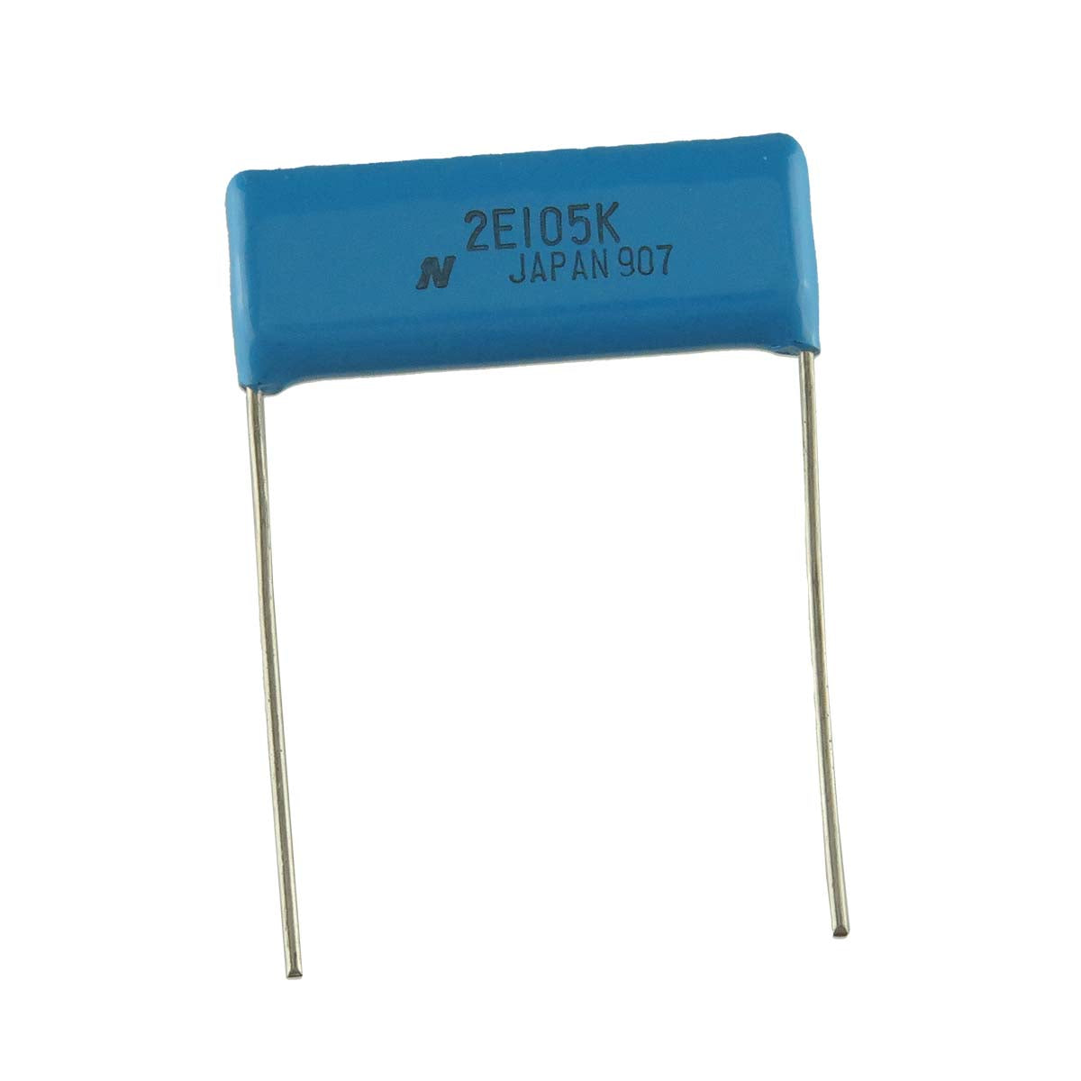 BYAB MDD22E105KD is a compact 1UF 250V 10% tolerance polyester capacitor with radial leads. Size only 1.16" long x 0.44" tall x 0.21" thick. Coated in durable blue epoxy coating. High quality-made in Japan.