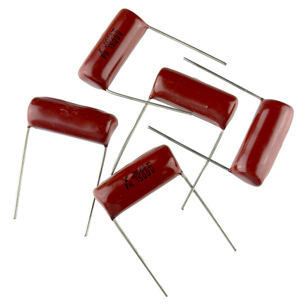 Farad Electronics 0.0068uF 1500WVDC polyester film capacitor is tested to 3750VDC. Size about 1.29" long x 0.52" diameter. Has long leads as shown. Brand new. Sold in a package of 5. Note: WVDC stands for Working Voltage DC, meaning the maximum direct current (DC) voltage that a component, can safely operate at under continuous conditions at its rated temperature.