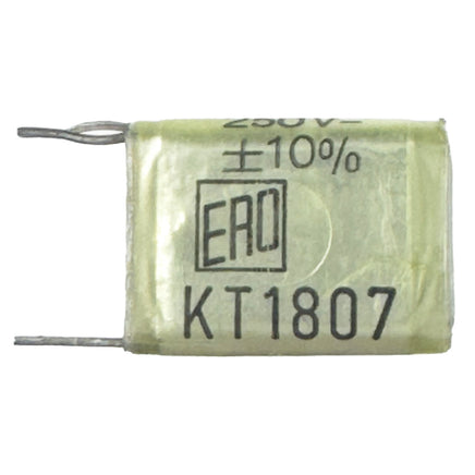 ERO KT1807 series film capacitor is rated 0.039uF 10% 250VDC or 100VAC. Size only 0.45" x 0.63" x 0.125" thick. Has radial PC leads as shown. Super Value!