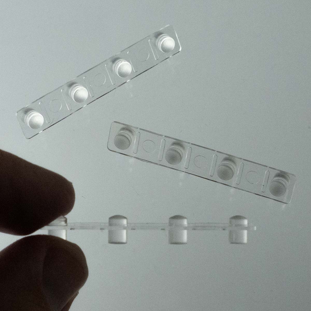 LED Light Pipe assembly transfers the optical output of 4 any color LEDs from the back of a panel to the front panel. Made of optical grade plastic, this particular pipe is about 1.8" overall length. It has 4 pipes each about 0.16" in diameter. End of pipe is a diffused rounded lens. Pipes are 0.24" long and are spaced about 0.35" apart. New - Sold in a package of 3.