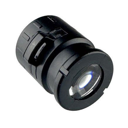 Miniature projection lens is made up of 4 tiny magnifying lenses housed in a 0.74" long x 0.60" diameter housing. In the center of the housing is a slide out negative/slide holder (no negative or slide included). It is designed to hold a 0.40" dia. slide or negative of an image of a logo that would be projected in full color on the pavement when you car door was opened (the distance was about 1.5 to 2.5 ft. Amazing little lens and slide holder. Does not come with projection lamp. New!
