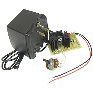 This is similar to our C6929 Power Supply Kit, however this kit uses a plug-in AC adapter to prevent any contact with 120VAC voltage. It features a regulated and filtered variable 0-12V output with up to 1Amp of available current. Uses an IC voltage regulator, heavy duty plug-in adapter and circuit that uses 3 different LEDs to indicate approximate voltages. Can power many electronic projects, radios, and small DC powered items. Size of PC board is 1.85 x 2.85". Complete with all parts, PC board, AC adapter and instructions. Skill level 1.
