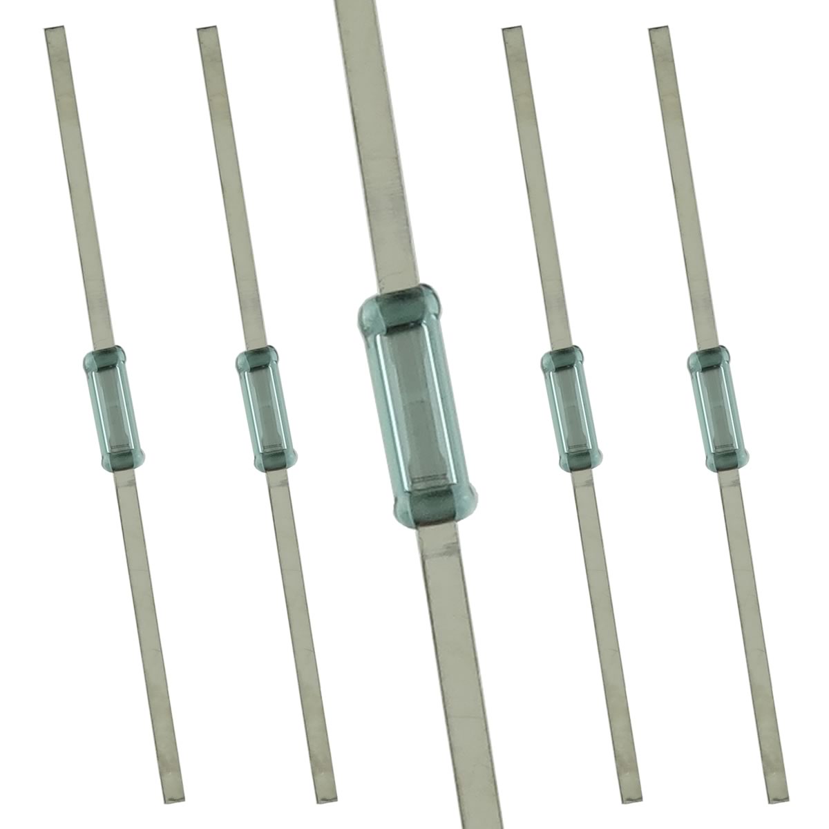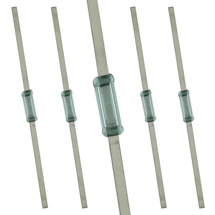 Super tiny reed switch is only 6.7mm long glass body x 1.6mm dia. - Features SPST normally open contacts. Contacts close when magnet is brought near. Made by SRC Devices Part# VM2S0609. Sold in a package of 5.