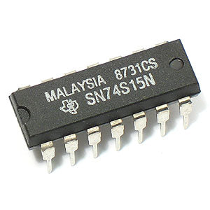 These devices contain three independent 3-input AND gates with open-collector outputs. The open-collector outputs require pull-up resistors to perform correctly. They may be connected to other open-collector outputs to implement active-low wired-OR or active-high wired-AND functions. Open-collector devices are often used to generate high VOH levels. The 74S15 is characterized for operation from 0°C to 70°C.14 pin DIP. Actual brand may vary from picture.