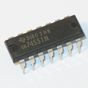 The 74S51 contains two independent 2-wide 2-input AND-OR-INVERT gates. They perform the Boolean function Y = AB + CD\. The 74S51 is characterized for operation from 0°C to 70°C.14 pin DIP. Actual brand may vary from picture.