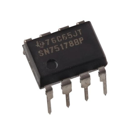 Texas Instruments SN75178BP is a RS-422 / RS-485 Interface/Differential Bus Repeater IC in a 8 pin dip case. Operates on 5VDC and has an output capacity of 60mA. Brand new - retails for $3.80 each.Sold in a package of 2.