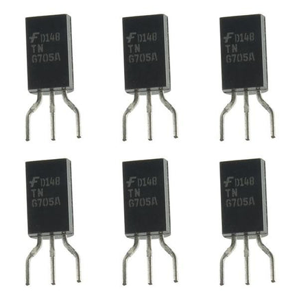 Fairchild TN6705A is an NPN general purpose amplifier transistor in a TO-226A plastic case.Rated VCEO = 45V, VCBO = 60V, VEBO = 5.0V and IC = 1.5Amp. This small but powerful transistor is rated 1Watt. Has PC leads cut and formed as shown. Sold in a package of 10.