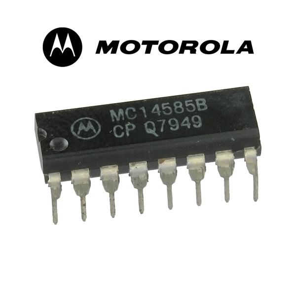 Motorola MC14585B is a 4-Bit Magnitude Comparator in a 16 pin thru-hole Dip. Applications include logic in CPU's, correction and/or detection of instrumentation conditions, comparator in testers, etc. These are becoming rare - hurry while our supply lasts. Original Motorola Part - New!| Additional Resources |