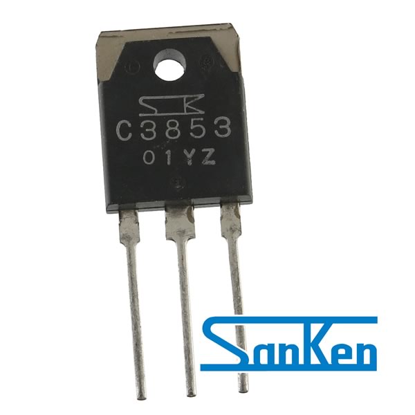 Sanken NPN power transistor for audio types 2SC3853 is rated 80V collector-emitter voltage and 6Amp IC. Rated 60Watts. Original Sanken Part - New!