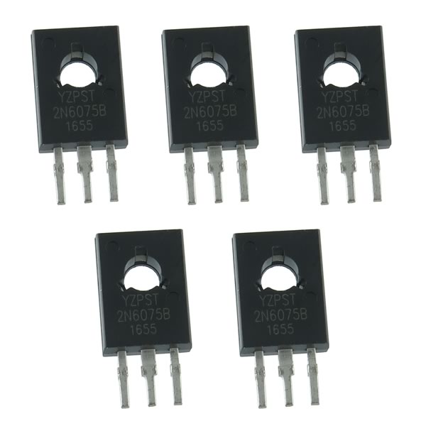 Triac Part# 2N6075B in TO-225-3 thru-hole case is rated 600V @ 4Amps. Leads are trimmed for PC board mounting. New - Sold in a package of 10.