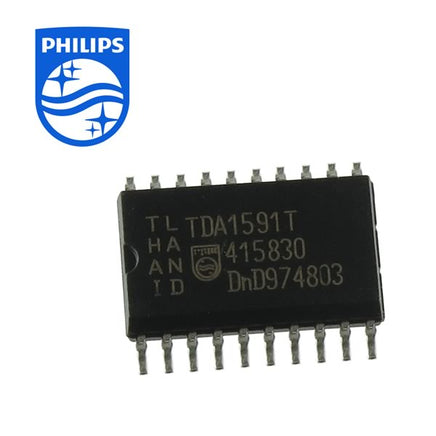 Philips TDA1591T PLL stereo decoder and noise blanker in a 20 pin SO20 SMD package for FM car radio applications. Provides noise blanking at MPX - demodulator outputs. Original Philips Part - New!