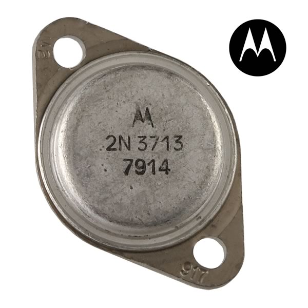 Motorola 2N3713 aluminum case TO-3 power transistor is rated 10Amp 150Watt. This silicon NPN transistor is used in amplifiers and switching applications. Original Motorola Part - New!