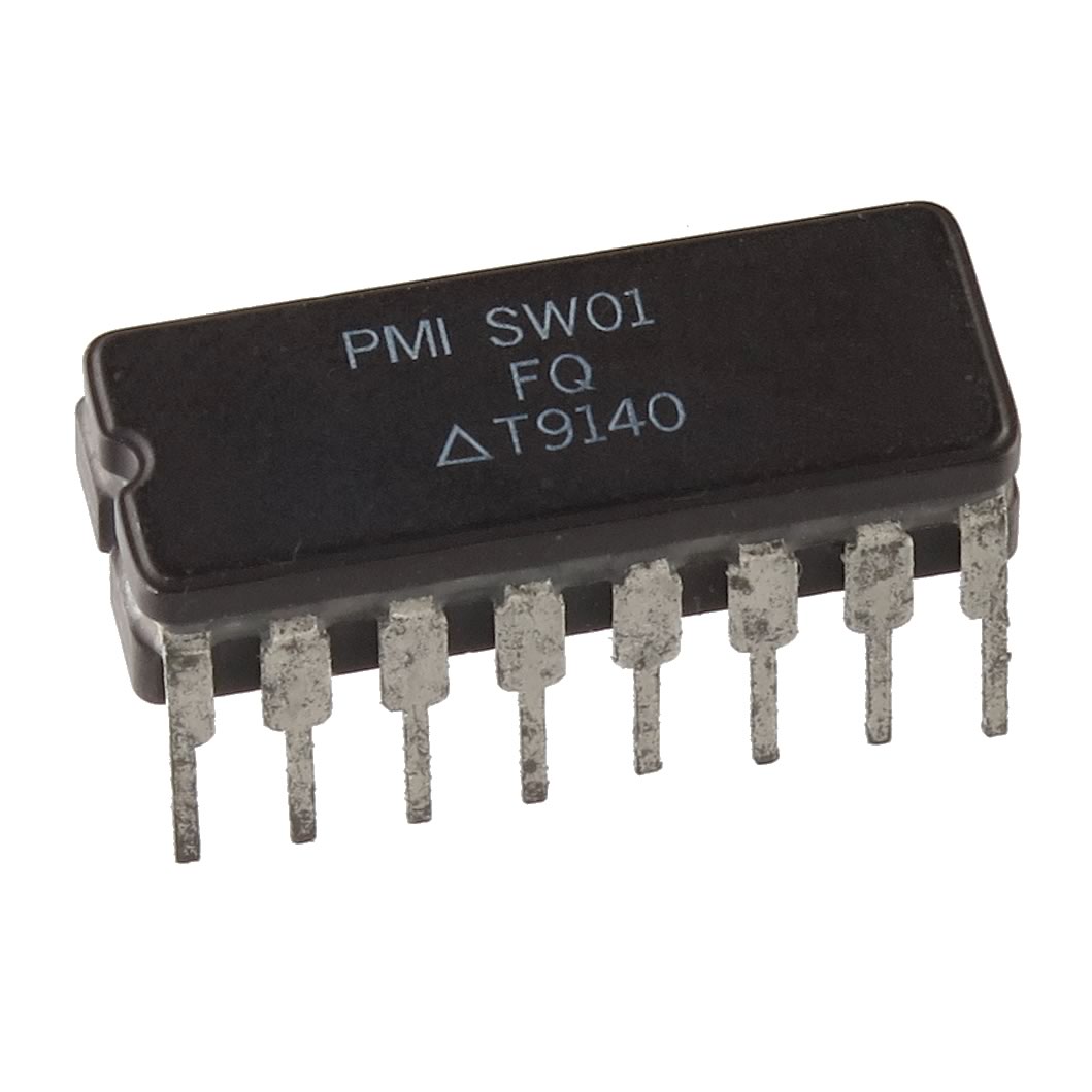 Precision Monolithics Inc. (PMI) IC Analog Switch Quad SPST IC Part# PMI SW01FQ in a 16-pin ceramic thru hole Dip package is a very rare part. Original PMI Part - Brand New!