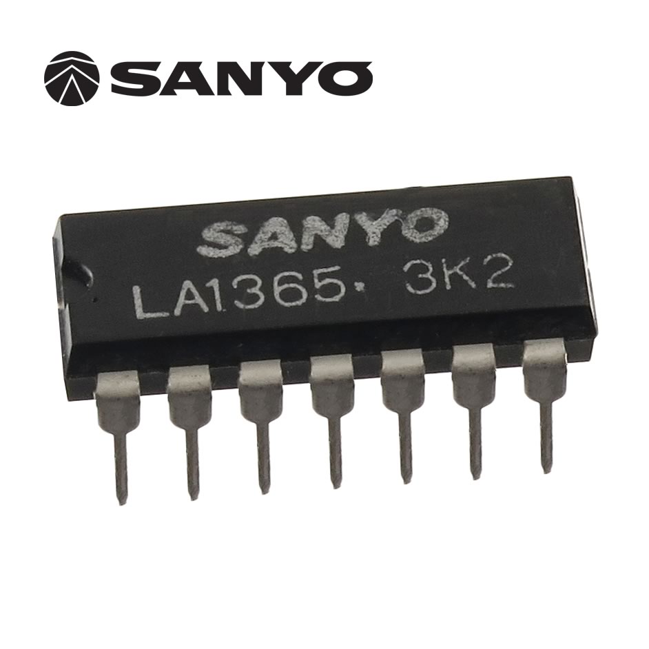 Sanyo LA1365 functions as IF Amp, Limiter FM Detector, Electronic Volume Control and AF Driver. Supplied in 14 pin thru-hole Dip. Original Sanyo Part - New!