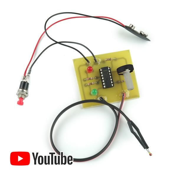 The Temperature Warning Kit can be set to indicate a rise or drop in temperature. You simply adjust the control knob on the kit for the ambient control temperature that the thermistor is sensing. Now as the temperature changes, a Red or Green LED indicates over or under temperature from the standard. Features an IC circuit and operation from one 9V battery (not included). Use this kit to warn of garden temperatures below 32° or refrigerator/freezer temperatures above normal, etc. Order optional wire to allow for remote location of thermistor sensor if desired. Size of PC board 2" x 1.6". Skill Level 1.