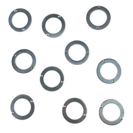 Heavy-duty steel washer for 3/8" bushings (standard 1/4" shaft potentiometers) has 2 dimples to help secure a panel mount nut. O.D. is 0.6" and I.D. is 0.4". Sold in a package of 10.