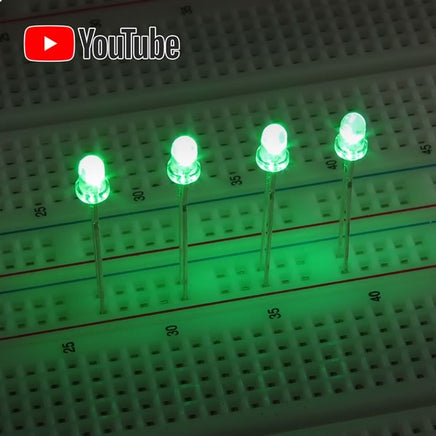 Crystal clear 3mm lens LED lights up a blinding Emeral Green when 3.2V @ 35mA is applied. Sold in a package of 10.
