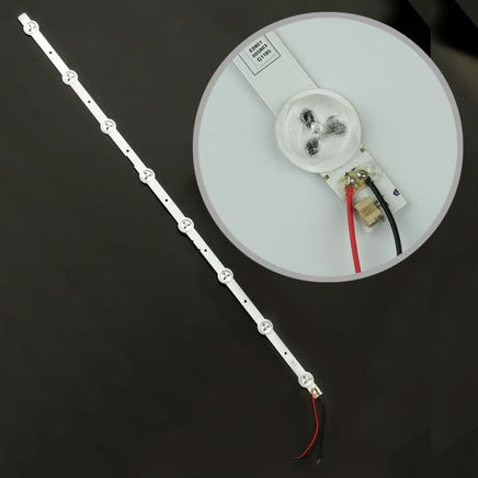 Our 24" long 8 White LED bar produces blinding white light when 24VDC @ 0.170 Amp is applied. Size is 24-5/8" long x 5/8" wide. Has 8 powerful SMD cool white LEDs with lens on each LED. Has short flexible color coded leads for power. Naturally, Red is (+). Worth many times our price!