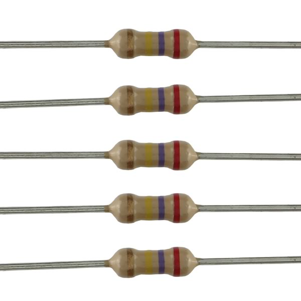Prime color coded 1/4 watt carbon resistor. Package of 100. 270K.