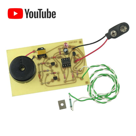 This kit makes a great burglar alarm for your home. Whenever anyone attempts to open your window, this kit produces a loud pulsating electronic sound from the built in piezo speaker and it also flashes a bright red LED. The sound won't stop, even if the window is closed again. Only you can shut it off. The kit will protect a window or door. It is very simple to install as only a small magnet (included) needs to be attached (glued) to the movable window or door.Uses IC, SCR and transistor circuitry. Operates on a 9V battery (not included). Size of PC board: 2 1/8" x 3 7/8".Complete with all parts, PC board, reed switch, magnet and instructions. Skill Level 2.