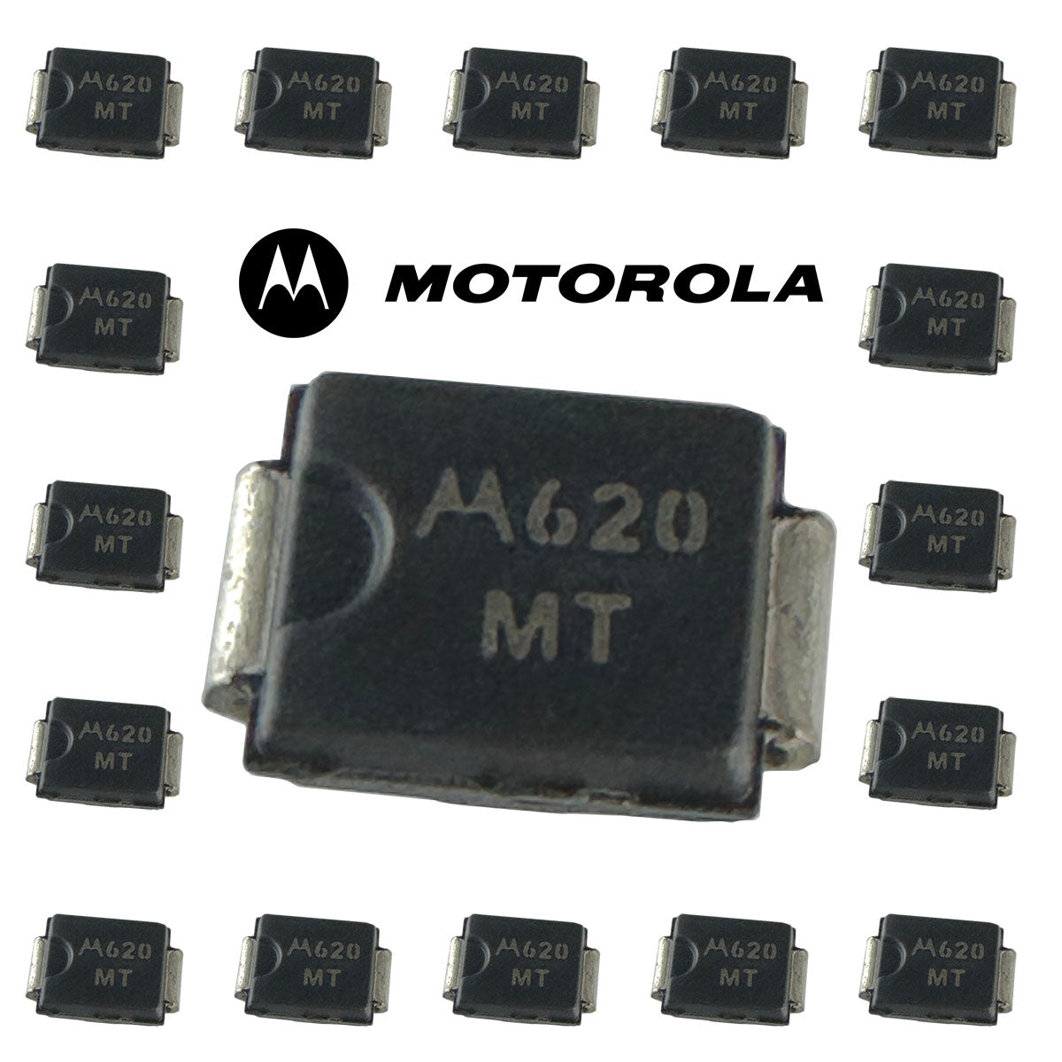 Motorola TVS Diode features a 69.4V clamp, 8.6 Amps IPP, and 43VRWM. Case size is 4.3mm long x 3.5mm x 2.1mm thick. New - Sold on tape and reel package of 25.
