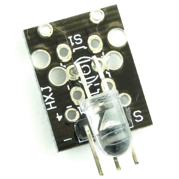 Small infrared emission module is 0.57" X 0.72". Consists of a powerful IR LED that is connected to the connector (only 2 active pins). Use it with logic boards to generate 38kHz modulated signals, IR controlled relays, etc. What you see in the picture is what you get. No schematic or documentation included. You can search the internet for hundreds of how to articles for applications. Sorry, we can't provide any technical help for this item.