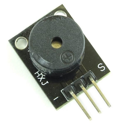 Active buzzer is 0.57" X 0.61". This buzzer module operates from 3.3V up to 5VDC and has built in circuit to produce a tone. What you see in the picture is what you get. No schematic or documentation included. You can search the Internet for hundreds of how to articles for applications. Sorry, we can't provide any technical help for this item.