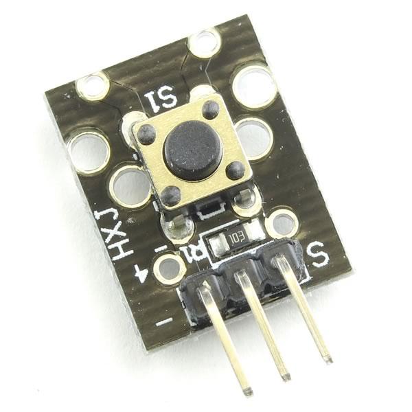 Small momentary contact pushbutton board is 0.55" X 0.72". It has a 10K resistor on board to provide for 3.3V to 5VDC (VCC), GND and output connections. What you see in the picture is what you get. No schematic or documentation included. You can search the internet for hundreds of how to articles for applications. Sorry, we can't provide any technical help for this item.