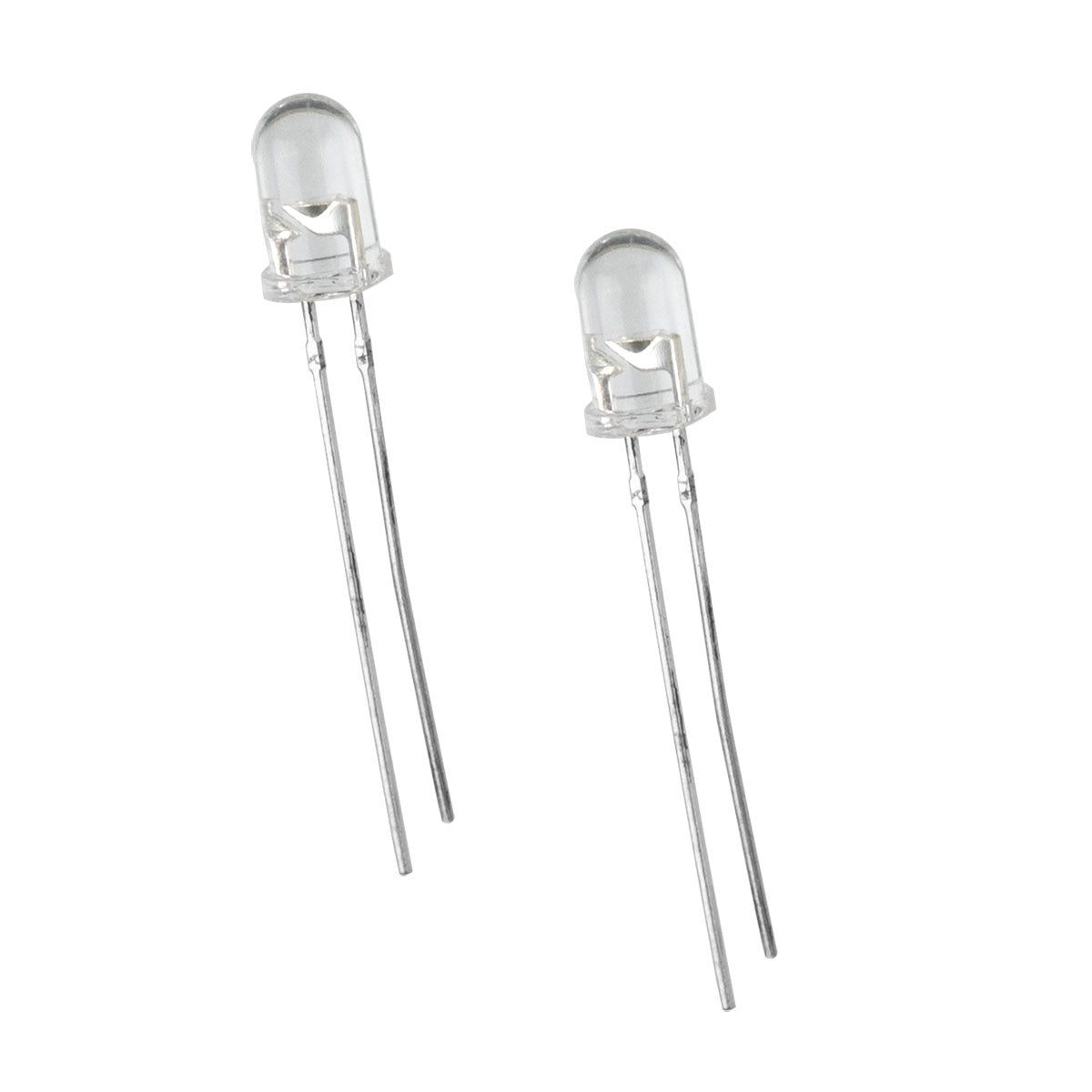 Bright ultraviolet (UV) Led features clear lens. Operates from 3.4VDC @ 40mA. Glows a light purple and brilliantly lights up Vaseline glass (green) and certain UV fluorescent minerals, Radium watch hands, fluorescent markers, etc. Sold in a package of 2.