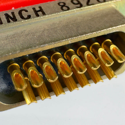 Tiny 15 contact connector by Cinch is a DCCM15SSB, D-Sub Micro D Connector. Contact are gold plated. Gender is female and current rating is 3Amps. Brand new in sealed Cinch bag. Retails for over $66.